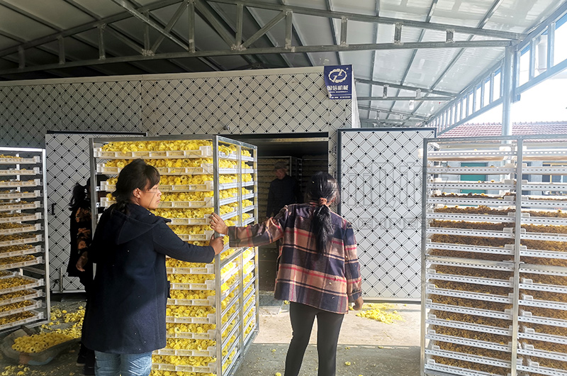 導讀:鮮菊花含水率我們按80%,要烘干到含水率13%,通過公式:干花重量=濕花重量×(1-烘干前含水率)/(1-烘干后含水率)可以計算出一百斤藥用菊花烘干后剩23斤左右,而鮮菊花4.35斤烘干后為一斤干菊花。