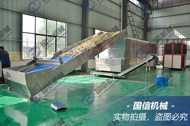 使用國信蔬菜專用網帶式烘干機干燥過的蔬菜色澤好,破損率低,收益高。可根據生產需要對網速、溫度和濕度進行調節,以滿足對不同含水率、不同品種的蔬菜進行烘干處理。