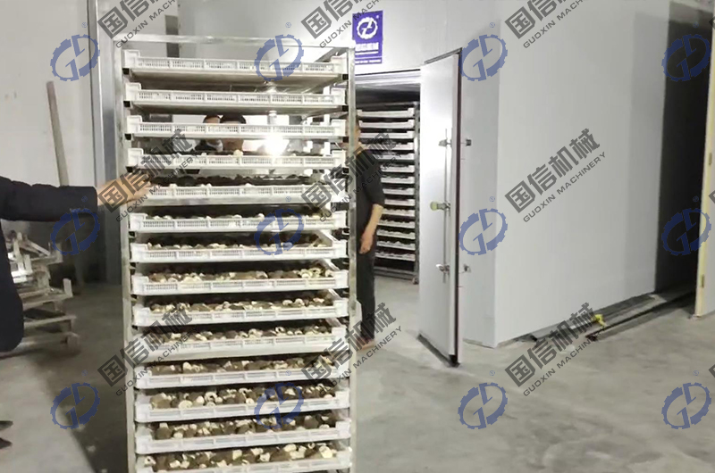 廣西南寧木瓜種植戶來鄭州國信烘干機廠家試機并考察木瓜絲烘干